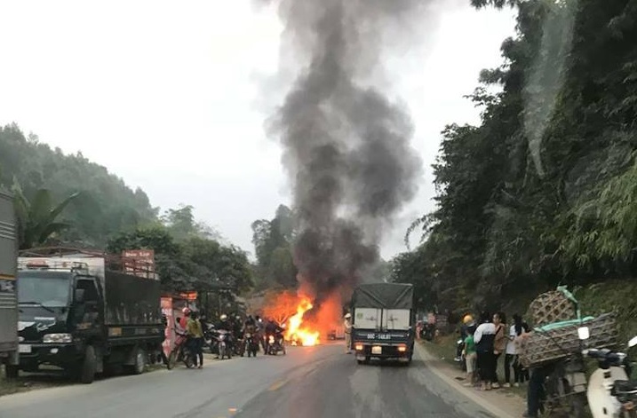 Xe ô tô bốc cháy dữ dội tại Km 32, QL2 thuộc xã Thái Sơn, huyện Hàm Yên.