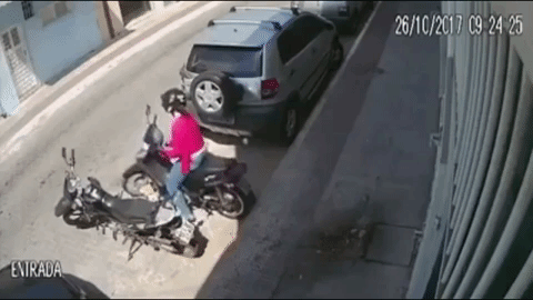 Chỉ có một mình, lại là phụ nữ, cô gái không thể kháng cự nên vờ làm theo yêu cầu của hắn. Không những thế, cô còn đưa hẳn chiếc mũ bảo hiểm của mình cho anh ta và nói một vài câu. Sau đó, tên cướp đồng ý mở cốp xe cho cô lấy đồ.