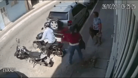 Sau khi lấy được túi đồ, cô gái nhanh chóng đi ra xa ở một khoảng cách an toàn rồi kêu gọi sự trợ giúp. Ngay lập tức, có vài người đàn ông đứng gần đó đã vác gậy gộc ra để xử lý tên cướp. Một thanh niên bất ngờ tung một cú đá khiến hắn ngã sõng soài trên vỉa hè. Người này cũng nhanh chóng dựng chân chống xe cho cô gái.