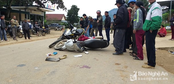 Một số người dân chứng kiến vụ việc cho biết, chiếc xe máy mang biển 37-L1 00180 do chị Lộc (trú tại bản Quỳnh 2, xã Châu Bình) điều khiển chạy hướng Quỳ Châu - Vinh va chạm với xe máy mang biển số 37-H1 20060 do một nam thanh niên (trú tại bản Rẽ, xã Yên Hợp, Quỳ Hợp) điều khiển chạy hướng ngược lại.