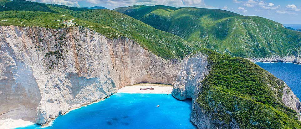 Ốc đảo của Địa Trung Hải là Bãi biển Navagio, nằm trên đảo Zakynthos của Hy Lạp, được mệnh danh là bãi biển đẹp nhất thế giới năm 2018. Đượcc các chuyên gia đánh giá là đẹp như một giấc mơ với làn nước trong vắt, xanh biếc. Du khách nên đến bãi biển này một lần tron g đời.