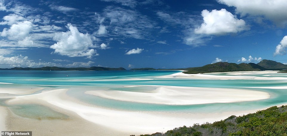Bãi biển Whitehaven ở Úc đẹp lung linh với dải cát dài bốn dặm. Đây là bãi biển trên đảo nhiệt đới Whitsunday, ngoài khơi bờ biển Queensland và khoảng 900 dặm về phía đông bắc của Brisbane. Bãi biển này mỗi năm có trung bình tới 292 ngày nắng và là một địa điểm lý tưởng cho cả gia đình trong một kỳ nghỉ thoải mái, vì có những điểm cắm trại tuyệt đẹp cùng khí hậu và cảnh quan rất quyến rũ.