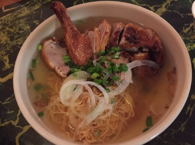 Phục vụ 24h, phở Kim Long gây ấn tượng với món phở hải sản tôm cua ăn chung với thịt xá xíu, hay món phở vịt nướng mà bạn khó có thể tìm thấy chúng trong các nhà hàng bán đúng chuẩn vị Việt Nam.