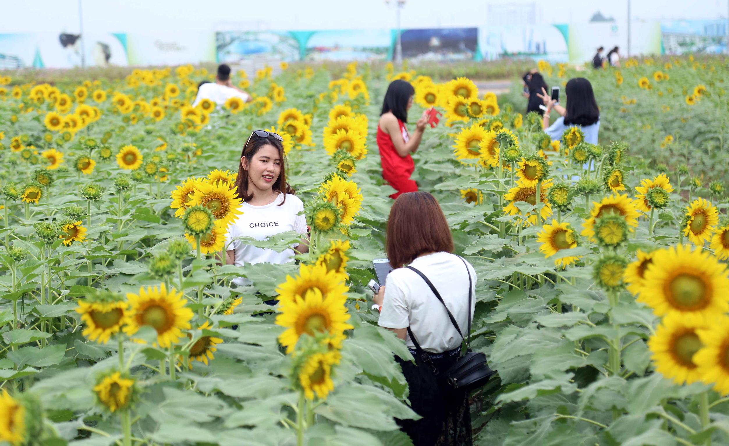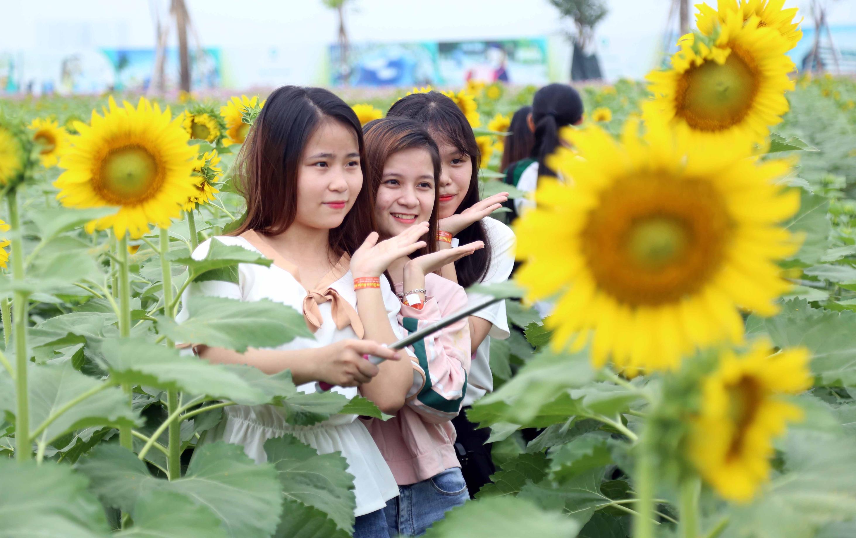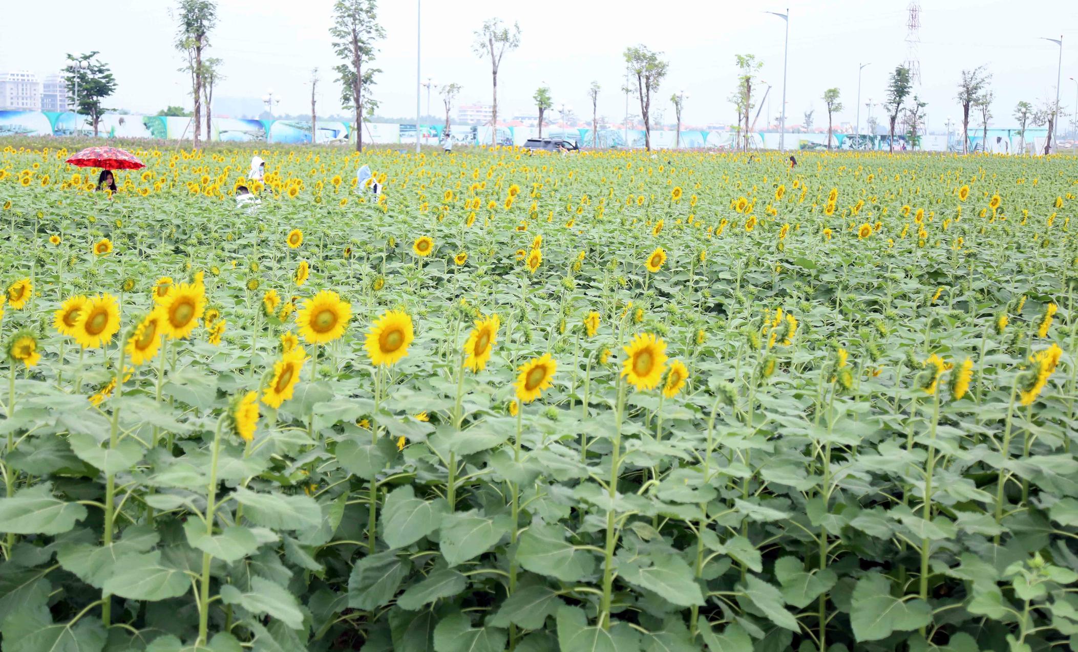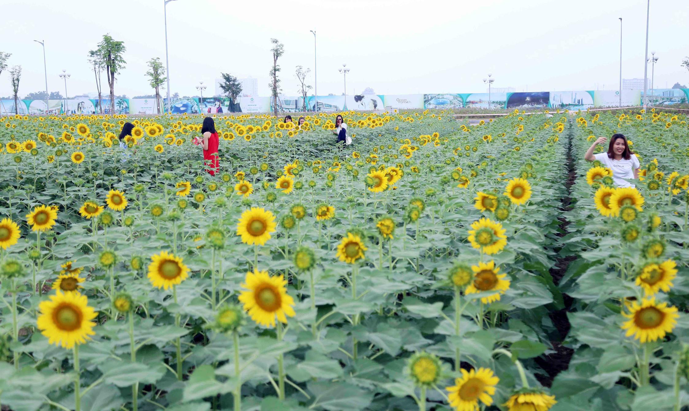 Ngay giữa Sài Gòn "mọc" lên cánh đồng hoa hướng dương. Có đến hàng trăm người dân đổ về cánh đồng hoa hướng dương ở Sài Gòn để chụp ảnh, ghi lại những khoảnh khắc đẹp. Nhiều nhất có lẽ là giới trẻ, nhiều người ngỡ như mình đang lạc vào cõi mơ.