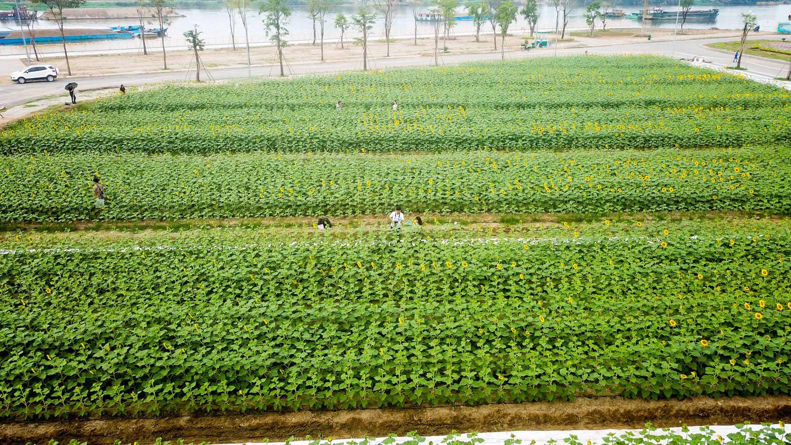 Cánh đồng hoa hướng dương với khoảng 600.000 cây được trồng theo hàng, thẳng lối