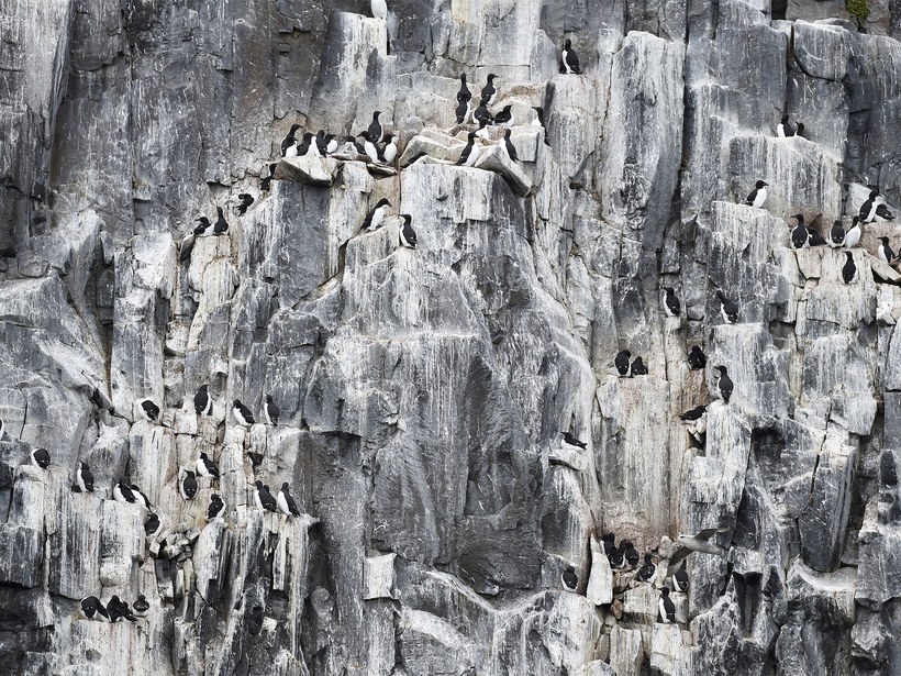 Không biết ông già Noel có sống ở đây không, nhưng đây chính là thuộc địa của chim biển guillemot của Brünnich. Một đàn chim biển ôm mặt đá ở tỉnh Spitsbergen thuộc quần đảo Svalbard, ở Bắc Băng Dương. Svalbard cũng là nhà của gấu Bắc cực và cáo Bắc cực, sống những ngày của chúng giữa những vịnh hẹp sâu và những tảng băng.