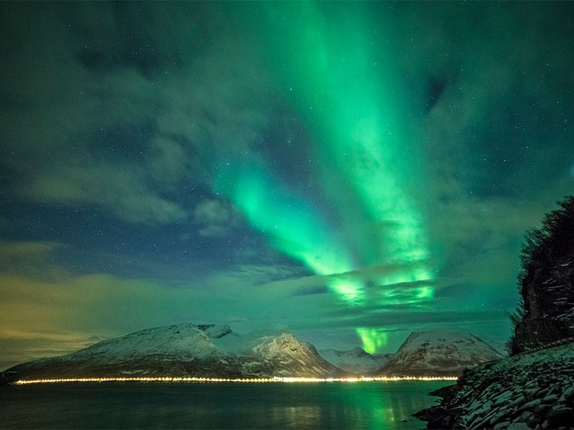 Bắc cực quang ở Lapland, Phần Lan. Thật may mắn nếu được một lần ngắm bắc cực quang. Bạn sẽ có vô số cơ hội nếu đến Lapland, Phần Lan, những màu sắc như xanh đậm và màu xanh lá cây như đang nhảy múa trên bầu trời sẽ giúp bạn bớt đi những căng thẳng, mệt mỏi trong cuộc sống.
