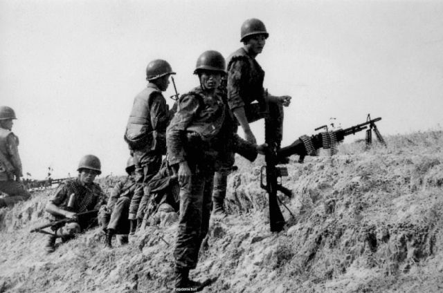 Trần mây vẫn còn thấp. Chiếc phi cơ quan sát sẽ không quan sát được gì cả. Tuy vậy, anh ta đã bay trên đầu chúng tôi, cố gắng tìm kiếm một lỗ hổng trong cái đám mây dầy đặt đó. Phi công quan sát nói cho tôi biết, phải chuẩn bị việc đánh dấu vị trí tiền phương ngay khu vực đánh nhau. Anh ta cho biết đã có vài chiếc phi cơ phản lực đang hoạt động trên vùng, nhưng bây giờ thì họ gần hết xăng nên phải rời vùng.