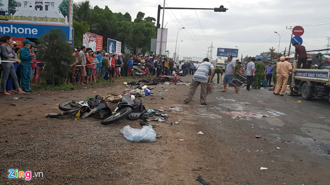 Khoảng 15h30, khi Hiếu lái xe đầu kéo cách ngã tư Bình Nhật 500 m thì đèn tín hiệu giao thông từ xanh chuyển sang đỏ, phía trước rất nhiều xe máy và xe tải dừng chờ; dù đã giảm dần tốc độ để đi vào làn ôtô, nhưng xe đầu kéo container đã lao thẳng vào dòng xe máy đang dừng.