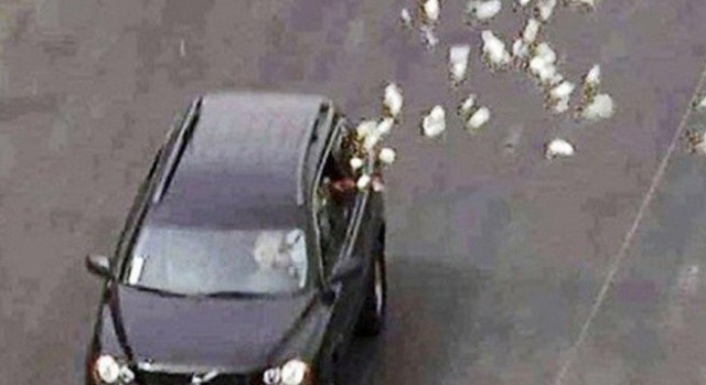Nữ đại gia chạy ô tô sang rải 300 triệu tung tóe khắp phố