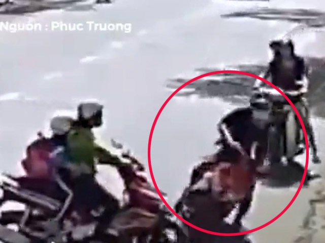 Tên cướp vừa giật tài sản của 2 người đang chạy xe máy, trong lúc bỏ chạy, hắn bất ngờ bị một chiếc xe khác qua đường "chặn lại", ngã xuống đường...