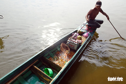 Nhiều người dân thấy cảnh này liền thuê ghe ra giữa sông để thả nhưng "đội vớt cá" vẫn bám theo sau đuôi ghe, cá vừa đổ xuống liền bị vớt lại.