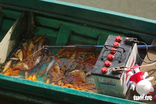 Cá phóng sinh bị xuyệt điện rồi vớt lại để bán - Ảnh: LÊ PHAN