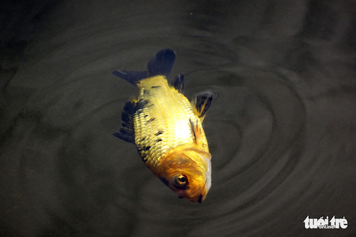 Một con cá chép cúng ông Táo ngắc ngoải do dính điện - Ảnh: LÊ PHAN