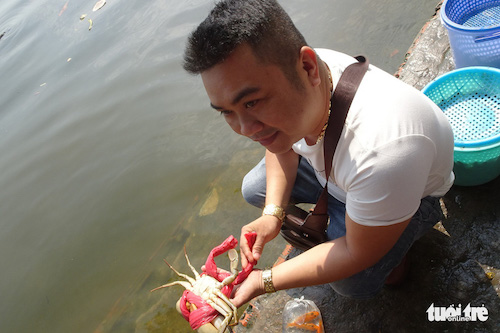 Người dân thả cả cua để phóng sinh - Ảnh: LÊ PHAN