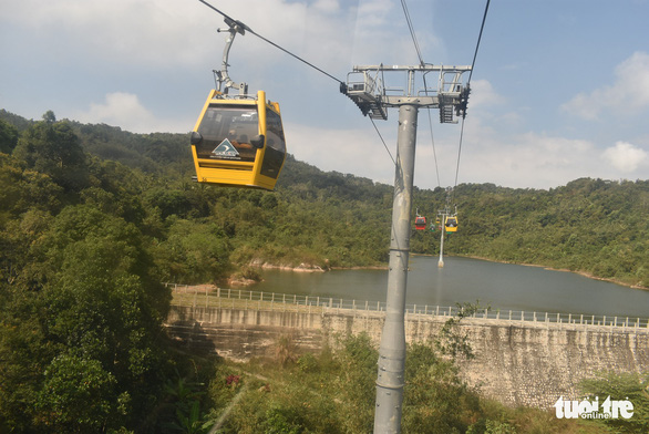 Lãnh đạo Cáp treo Núi Cấm cho biết tuyến cáp treo này có 89 cabin, công suất vận chuyển trên 2.000 người/giờ - Ảnh: BỬU ĐẤU
