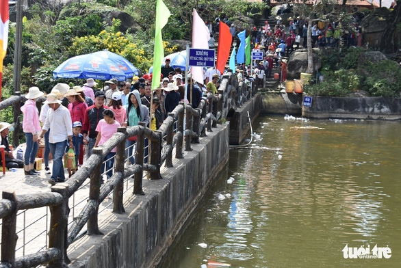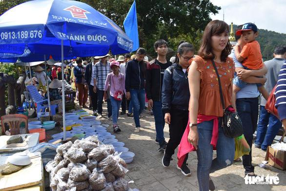 Do có hàng chục ngàn lượt khách đến Núi Cấm mà ngành chức năng không kiểm soát được nên đã xảy ra nhiều vụ du khách bị giật dây chuyền vàng - Ảnh: BỬU ĐẤU
