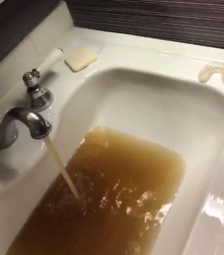 Charles Ashwanden, khách thuê phòng tại khách sạn cao cấp ở thành phố New York, Mỹ đã đăng tải lên mạng hình ảnh nước bẩn trong phòng tắm. Nam du khách đến từ London (Anh) nghi ngờ hệ thống nước ở đây bị trục trặc khi nước đục ngầu và chuyển sang màu nâu được xả ra từ bồn rửa mặt. Charles cho biết, phòng của anh có giá 150 USD mỗi đêm, Sun đưa tin ngày 7/2.