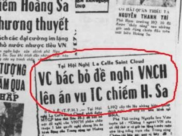 Khi xảy ra trận hải chiến Hoàng Sa, BVN không dám lên tiếng phản đối Trung Cộng vì BVN đang nhận viện trợ của Trung Cộng để tiến hành chiến tranh xâm lăng NVN. Nhà cầm quyền Hà Nội chỉ tuyên bố rằng những tranh chấp lãnh thổ giữa các nước cần được giải quyết bằng thương thuyết trong tinh thần tôn trọng sự công bình, tương kính và láng giềng tốt. (Qiang Zhai, China & Vietnam Wars, 1950-1975, The University of North Carolina Press, 2000, tr. 210.)