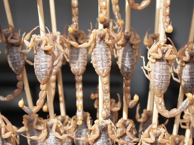 Thức ăn đường phố ở đây rất kỳ lạ. Bạn có muốn một con bọ cạp xiên nướng?
