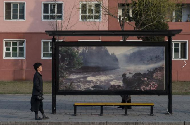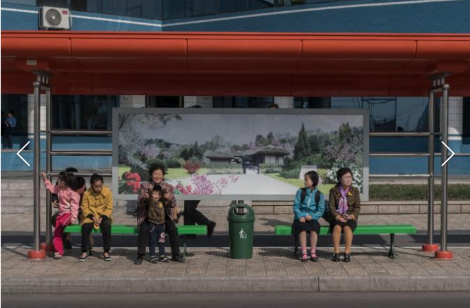 Những hình ảnh này của Ed Jones chụp người Triều Tiên khi họ chờ tại các trạm xe buýt ở thủ đô Bình Nhưỡng. Các bến xe buýt ở Triều Tiên khác lạ so với ở các nơi khác. Thay vì quảng cáo thể thao hoặc graffiti, chúng có phong cảnh hoặc cảnh quan thành phố, thường là phong cảnh đẹp.