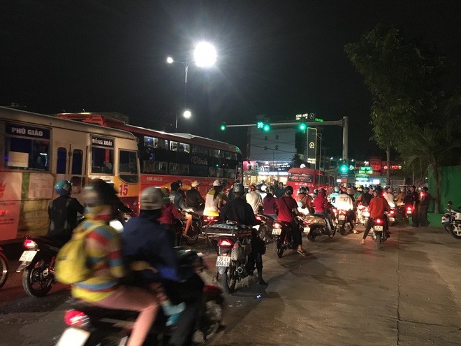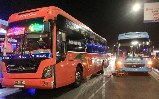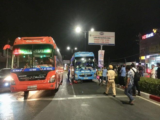 Tại hiện trường, xe máy của nạn nhân nằm lọt dưới gầm xe khách. Xe máy nằm trong làn đường dành cho ô tô. Vụ tai nạn khiến giao thông qua khu vực hỗn loạn, kẹt cứng kéo dài.