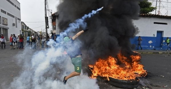 Video: Guaido và Maduro đang đụng độ tại biên giới. Lực lượng Vệ binh Quốc gia Venezuela đã bắn hơi cay vào cư dân đang cố gắng dọn chướng ngại vật trên cây cầu biên giới bị chặn giữa Venezuela và Colombia hôm thứ Bảy, 23-02-2019.