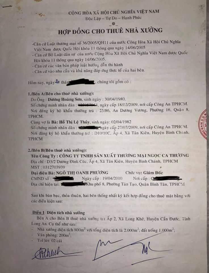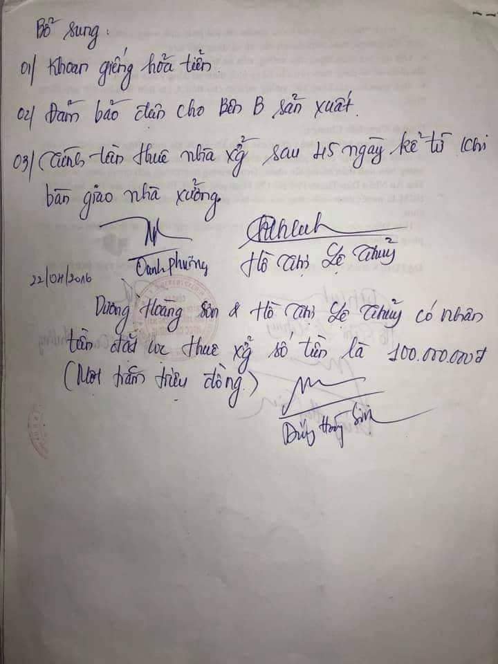 Rồi Phương thuê xưởng, tay chủ nhận 100 triệu, rồi không giao mặt bằng, mà kêu liên hệ với một ông tên Nhã "công an Bình Tân" để lấy tiền. Mà ông Nhã này là thiệt hay giả, đang xác minh.