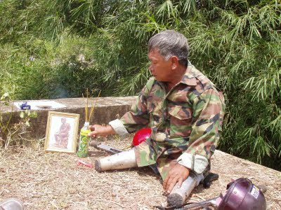 Chống đôi nạng gỗ xuống xe, tiếng gõ khô cứng của đôi nạng trên mặt đường khiến ông lão ngẩng đầu và nhận ra tôi. Xiết chặt tay ông cụ, trong ánh mắt già nua chùng xuống nỗi tiếc thương, chòm râu bạc lưa thưa phất phơ trước gió. Ông cụ đọc báo, nghe đài phát thanh nên biết Anh đã ra đi, nên sáng nào cũng để một bó hoa tưởng nhớ và tiễn đưa Anh. Cụ mời tôi điếu thuốc Quân Tiếp Vụ, rồi ngồi xuống cạnh gốc cây, tay vuốt nhẹ trên những cánh hồng, sợi khói mỏng manh của điếu thuốc nhà binh quện trong tiếng nói: