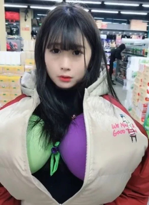 Với bộ ngực to bất thường cô gái đã khiến cho nhân viên an ninh phải chú ý tới. Nhiều khả năng thì đây là 1 vụ ăn cắp đồ tuy nhiên phía siêu thị lại không hề biết là mất gì. Chỉ đến khi cô gái kéo cài áo xuống mọi người mới thực sự bất ngờ.Mới đây, bức ảnh một cô gái có vẻ ngoài xinh đẹp đi siêu thị đã được chia sẻ rộng rãi trên các trang mạng Trung Quốc. Tuy nhiên, điều mà mọi người để ý nhất không phải là nhan sắc của cô gái trẻ mà là vòng 1 to bất thường, không cân xứng của cô.