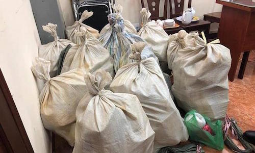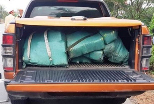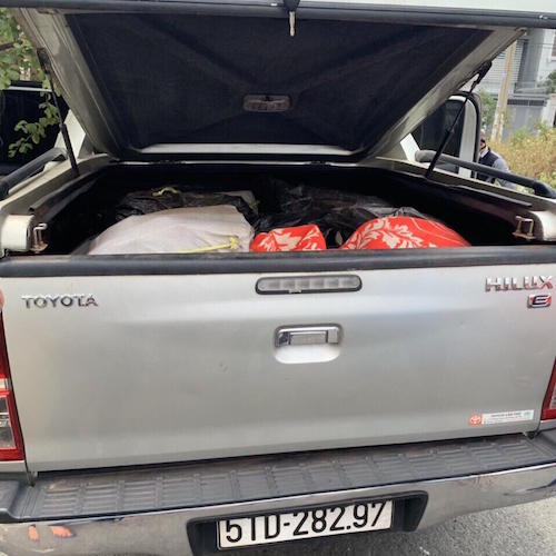 Lúc này trên xe có 2 người. Khi tổ CSGT yêu cầu các đối tượng mở cốp sau xe để kiểm tra thì cả 2 bỏ chạy. Tiến hành mở cốp xe, lực lượng chức năng phát hiện 12 bao tải màu xanh, bên trong chứa các gói nhỏ tinh thể màu trắng với tổng trọng lượng 308kg, được xác định là ma túy đá.