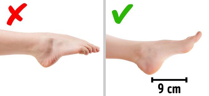 Một cách khác để chọn giày thoải mái là chú ý đến khoảng cách giữa gót và phần đế trước. Gót giày càng cao thì khoảng cách này sẽ càng ngắn. Khoảng cách 6 cm được coi là an toàn - nó giúp bàn chân có tư thế dễ chịu với độ ổn định tốt.