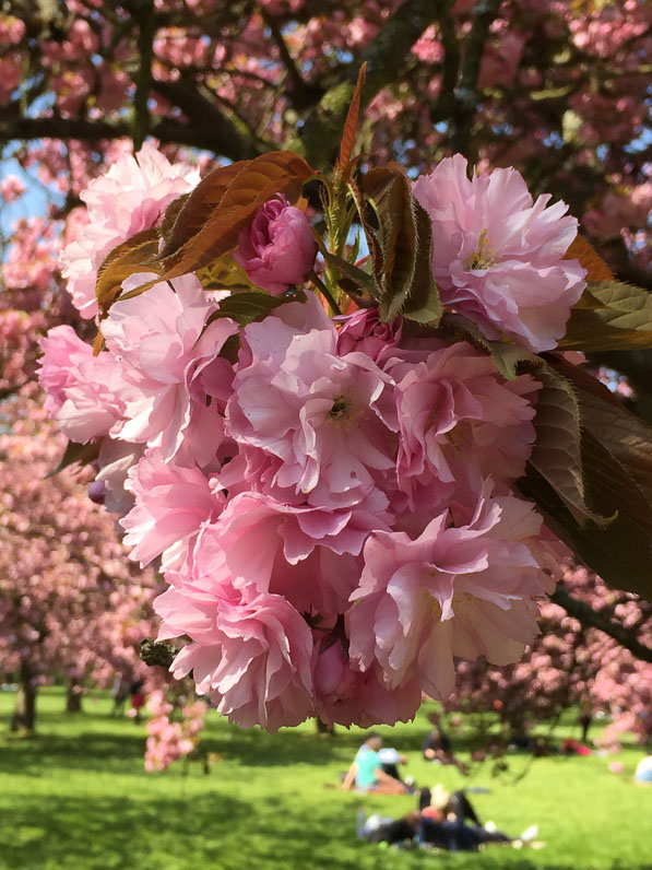 Mùa xuân sang thì đủ loại hoa Anh Đào. Anh thích 1 trong những loại này vì nó trổ bông trong khi hầu hết những cây khác đang ngũ Đông. Nó trổ từ tháng 11 đến tháng Tư, xong nhường cho những hoa khác trổ, nó đi...ngũ.