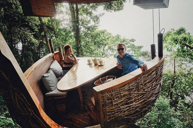 Mỗi bàn ăn của nhà hàng này được đặt trong cấu trúc giống tổ chim ở trên cây cách mặt đất khoảng 5m. Du khách có thể yêu cầu những dịch vụ đặc biệt cho bữa ăn của họ. Đồ ăn sẽ được nhân viên phục vụ chuyển tới cho khách bằng hệ thống cáp.