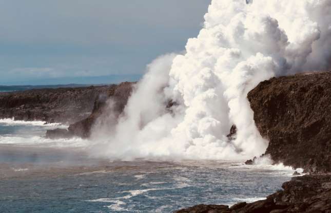 Núi lửa Kilauea đã hoạt động từ năm 1983 và dòng dung nham dài 6,5 dặm tràn vào đại dương, khiến nước sôi và dung nham cô lại thành đá. Khảo sát Địa chất Hoa Kỳ cảnh báo rằng các lỗ thông hơi trên lớp đá có thể phun ra những tia nước dung nham nóng và làm bắn tung những mảng đá.