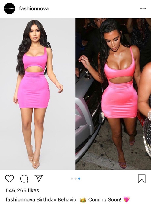Khả năng tạo ra xu hướng thời trang của chị em nhà Kim “siêu vòng 3” còn nhờ một phần vào sự nhanh nhạy của các thương hiệu “thời trang nhanh” như Fashion Nova, Boohoo hay PrettyLittleThing… Ngay khi Kim, Kylie hay Koutney, Khloé Kardashian đăng bất cứ một tấm ảnh nào lên mạng xã hội, trong một trang phục xinh đẹp nào đó, các thương hiệu kia lập tức có bản “dupe”, với giá có khi chỉ bằng một chiếc pizza cỡ lớn! Dễ dàng mua và mặc những thứ thần tượng mình đang chưng diện, có cô gái nào lại không muốn?