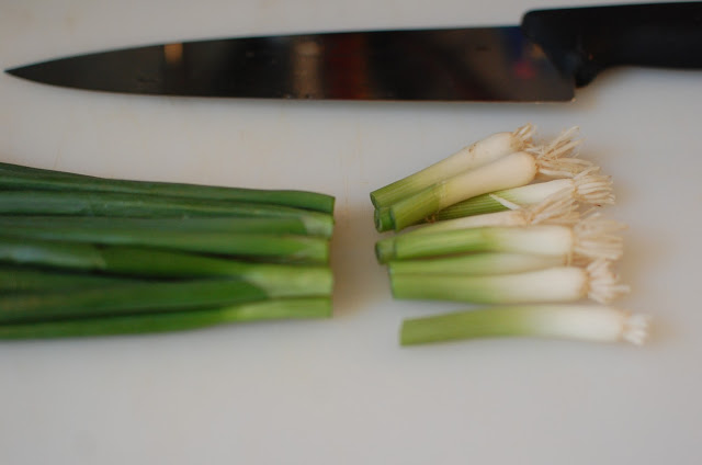 - Cắt phần trên lá xanh của hành để nấu ăn như bình thường và giữ lại phần gốc màu trắng nguyên vẹn.