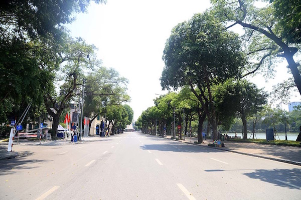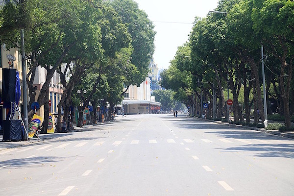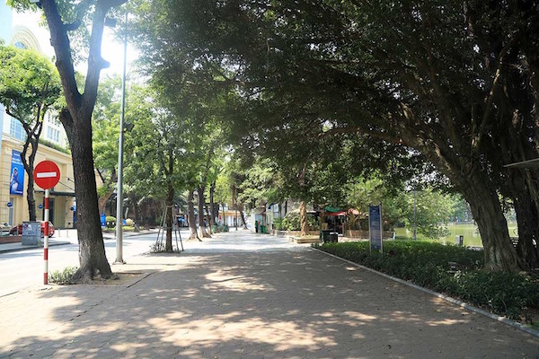 Phố đi bộ quanh hồ Gươm vì thế vắng tanh trong khoảng từ 10h sáng đổ về chiều