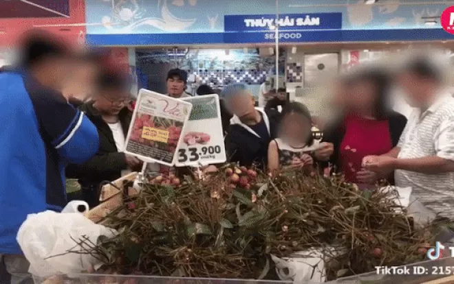 Mặc dù phía siêu thị đã có biển chú ý: "Quý khách vui lòng không ăn thử và xé lẻ chùm vải. Xin cảm ơn!" nhưng dường như các khách hàng này đều phớt lờ và vẫn thản nhiên dùng thử sản phẩm. Sau một hồi đánh chén no nê của các khách hàng vô ý thức, những chùm vải đầy đặn ban đầu giờ chỉ trơ trọi lại toàn cuống.