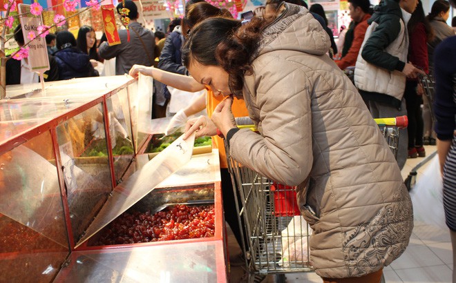 Tại các quầy dù đã có biển nhắc nhở "Quý khách vui lòng không ăn thử", nhưng nhiều người vẫn vô tư "nếm cho biết vị" trước khi mua, từ kẹo, bánh, mứt, cho đến hoa quả khô. Lượng người ăn thử nhiều nhất chủ yếu tập trung ở các quầy nho khô và bánh, kẹo rời. Nhiều loại được bọc trong túi nilon vẫn bị người mua bóc ra ăn thử. Rác vứt khắp sàn nhà.