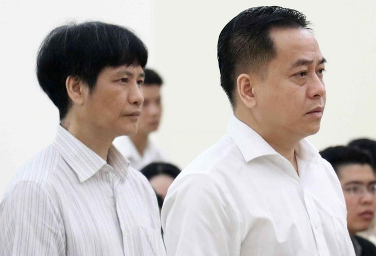 Bị cáo Vũ "Nhôm" (bên phải) và bị cáo Nguyễn Hữu Bách (cựu phó Cục B61) hầu ṭa ngày 12/6.