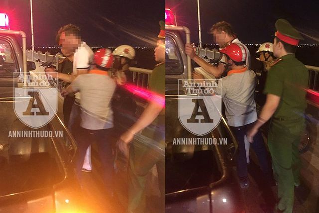 Lập tức, tổ Cảnh sát 113 nhanh chóng tới hiện trường. Khi tới nơi, cảnh sát thấy người đàn ông ngoại quốc đang giằng co với một cặp đôi nam nữ người Việt, do cặp đôi này muốn ngăn anh ta tự sát.
