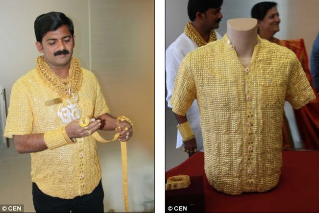 Năm 2014, doanh nhân Pankaj Parakh, Ấn Độ bỏ tiền làm ra chiếc áo sơ mi từ hơn 4kg vàng.