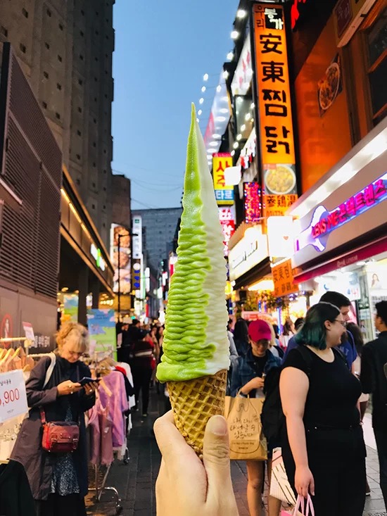 Nổi bật trong nhiều loại kem ở Seoul là kem dài 32 cm. Nó thường xuất hiện trong một số cảnh phim. Ngoài ra, với hình dáng độc đáo, chiếc kem này ghi điểm bởi “ăn hoài chưa hết”. Vị kem ngọt thanh vừa phải, mùi thơm dễ chịu. Bạn có thể chọn nhiều hương vị như trà xanh, vani, dâu, chocolate...