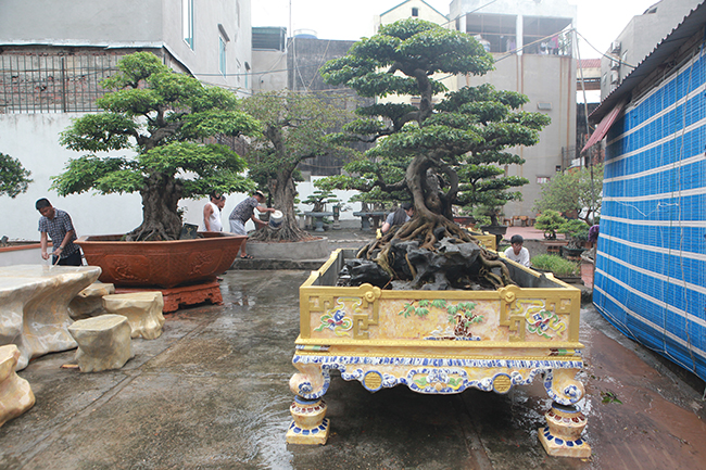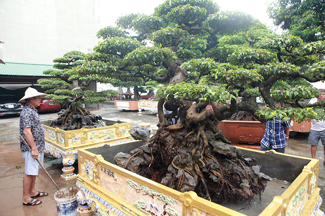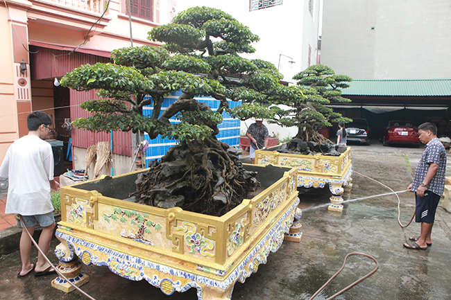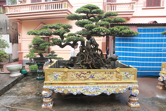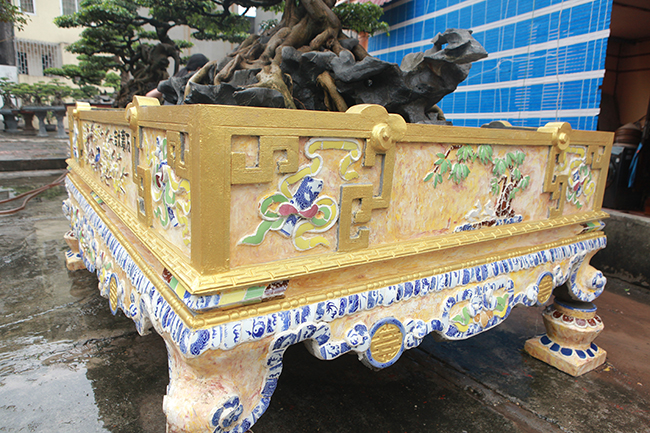 Nhằm nâng tầm giá trị của cặp sanh, anh Toàn đặt cây lên hai chậu rất đẹp. Chậu được làm rất tỉ mỉ và công phu, một phần thành chậu được dát vàng. Vì vậy, các nghệ nhân phải mất 4 tháng mới hoàn thành cặp chậu.