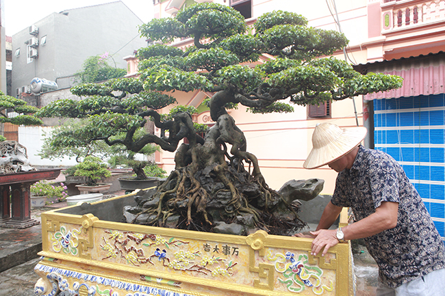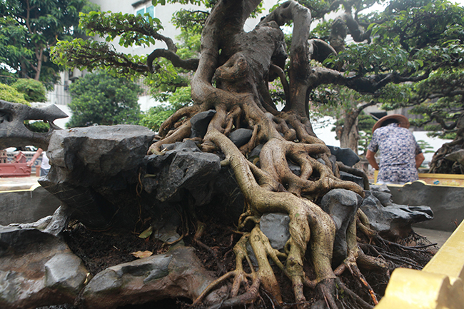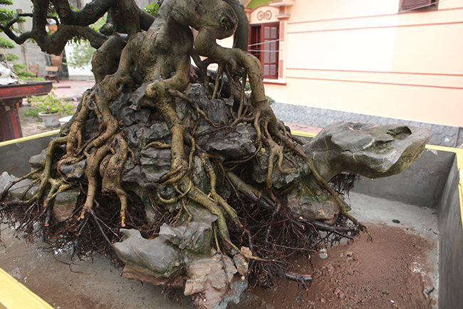 Cây được làm theo lối cổ của các nghệ nhân xưa, từng bộ rễ, thân đều được uốn rất chuẩn mực.