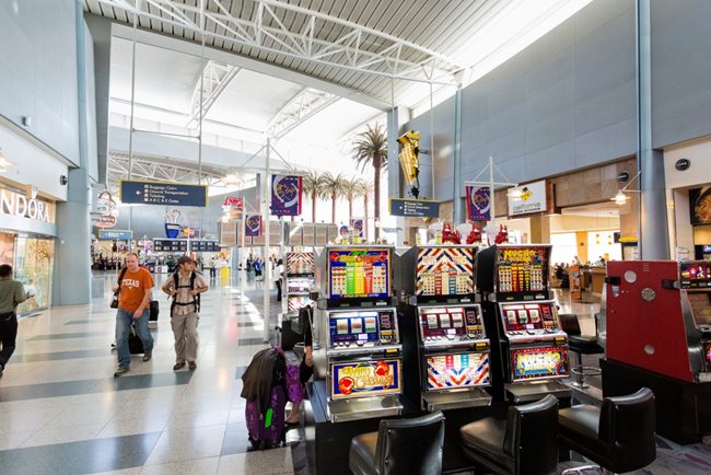 Sân bay quốc tế McCarran ở Las Vegas sẽ khi đến du khách ngạc nhiên với quầy sòng bạc nhỏ ngay ở sân bay. Sòng bạc thu nhỏ này có các máy đánh bạcđầy sắc màu. Chẳng cần phải ngồi đợi lâu, bạn có thể chọn bất cứ chiếc máy nào để chơi đánh bạc trước giờ lên máy bay.