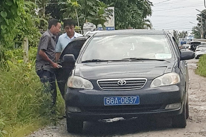 Ôtô của Đoàn đại biểu Quốc hội tỉnh Đồng Tháp chở cán bộ dự đám cưới con trai bà Hồ Thị Cẩm Đào. Ảnh: Việt Tường.