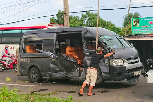 Chiều 28/7, ôtô 45 chỗ chở đoàn công nhân ở Đồng Nai đi du lịch, chạy trên đường Ven Biển từ TP Vũng Tàu hướng về huyện Long Điền (Bà Rịa - Vũng Tàu). Khi đến ngã tư giao với đường Chi Lăng (phường 12), xe húc vào ôtô 16 chỗ biển số tỉnh Bình Thuận đang băng qua đường, đẩy đi một đoạn.