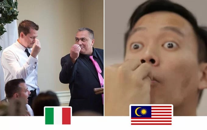 Đây là ký hiệu quen thuộc ở Italy khi muốn biểu thị ai đó đang nói không rõ ràng khiến họ chưa hiểu. Còn ở Malaysia, nó có nghĩa là "chờ một phút", nếu đưa vào miệng thì có nghĩa là "ăn".